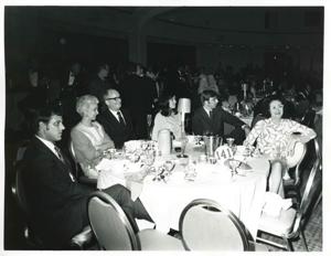 Charles and Mary Ward seated at a dinner table with others., 1950-01-01 - 1976-12-31