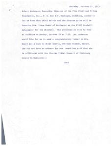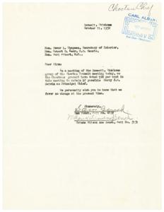 Choctaw Council's Letter in Support of Retaining Harry J.W. Beivin as Principal Chief in 1952, 1952-10-11