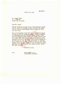 Correspondence Regarding Assistance for Native American Heirs in Filing Proofs of Heirship, 1949-10-05