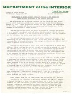 Revamped Regulations for Johnson-O'Malley Program Published in Federal Register, 1974-08-21