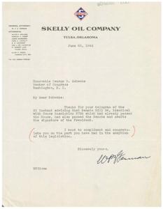 Letter of Thanks from Deep Rock Oil Corporation to Honorable George B. Schwabe, 1945-06-21