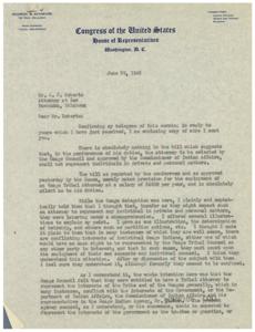 Letter of Thanks to Honorable George B. Schwabe for Senate Bill 54, 1945-06-23