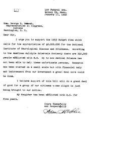 Letters Advocating for Increased Funding for Multiple Sclerosis Research in 1953, 1952-02-02