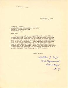 Letter Urging Congressional Support for National Institute of Neurological Diseases Funding, 1952, 1945-01-01 - 1946-12-31