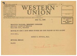 Opposition to Bill RH 2346: Telegram to George B. Schwabe, 1946-06-29