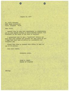 Congratulatory Letter to Chris Economou on his Election as Supreme Vice President of The Order of The Sons of Pericles, 1977-08-16