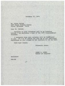 Congressional Correspondence from Assistant Majority Whip James R. Jones to Mrs. Verlon Bogle, 1974-12-16