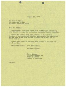 Congressional Response to Social Security Assistance Request, 1977-08-11