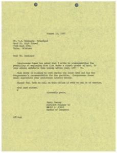 Congressman's Recommendation for Student Employment at Byrd Jr. High School, 1977-08-10