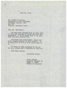 Correspondence Between Frankoma Pottery, Inc. and Congressman James R. Jones Office Regarding 'Uncle Sam' Image and Toby Mugs, 1975-07-29
